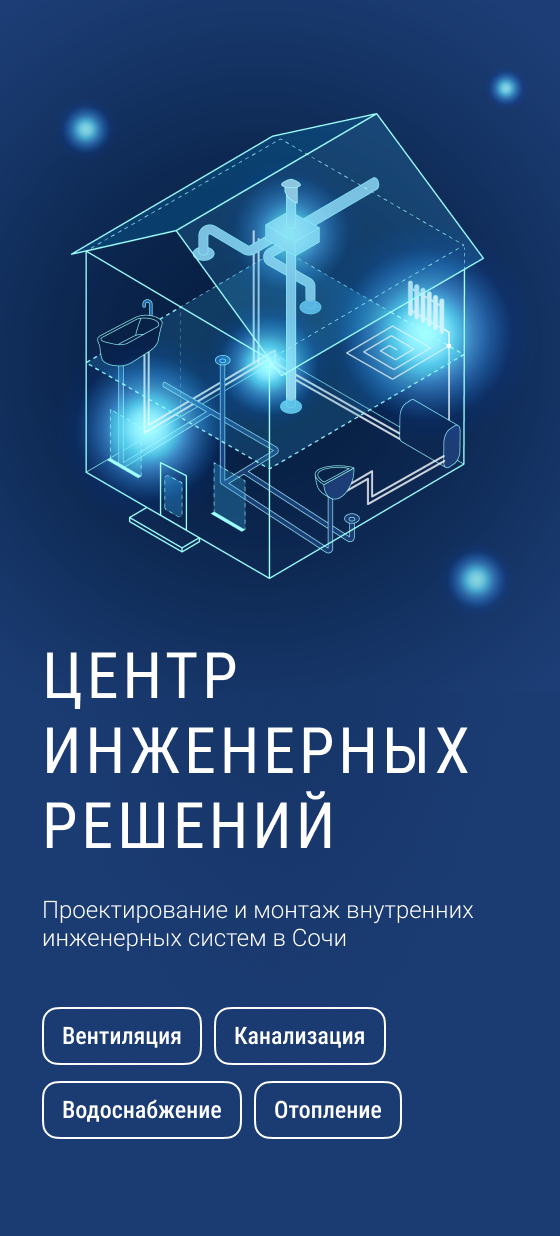 Центр инженерных решений (г. Сочи) предлагает полный цикл обслуживания внутренних систем дома: от проектирования до монтажа и ремонта. Сайт организации находится на этапе создания, и ему требуется цепляющий первый экран.